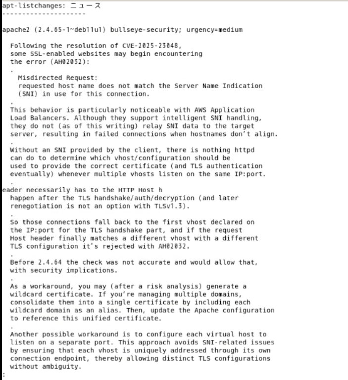 sudo apt upgrade実行中、添付の apache2関連のエラー(AH02032)が出て、処理が中断されました。